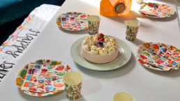 + Gedeckter Tisch mit Geburtstagsdeko, Servierten, Gabeln und Tellern für 30 Min.
